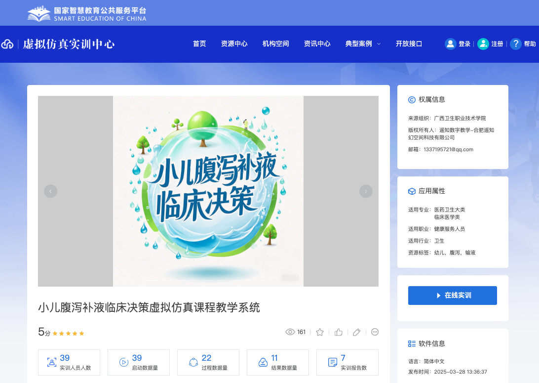 遥知与广西卫生职业技术学院联合开发的《小儿腹泻补液临床决策》虚拟仿真课程正式上线国家职业教育智慧教育平台(课程链接),标志着校企共建数字教育资源取得新突破。