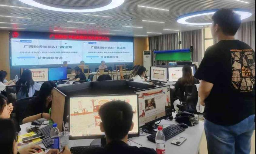 广西遥知与广西财经大学新闻与文化传播学院围绕虚拟仿真实验一流课程建设进行了深入交流与实践。此次活动包含专题座谈会和双导师现场授课两个主要环节。