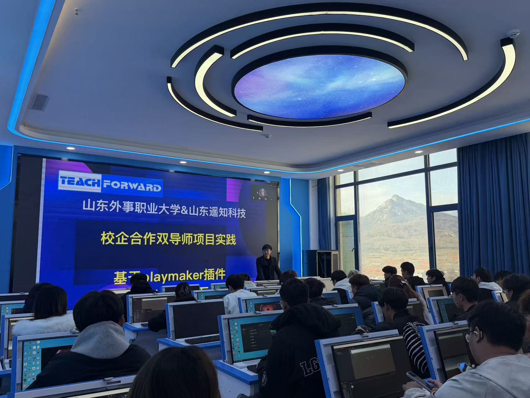 近日,山东外事职业大学与山东遥知联合开展的“基于Playmaker插件的室外虚拟交互”双导师项目实践正式开课,标志着双方在产教融合领域迈出实质性步伐。