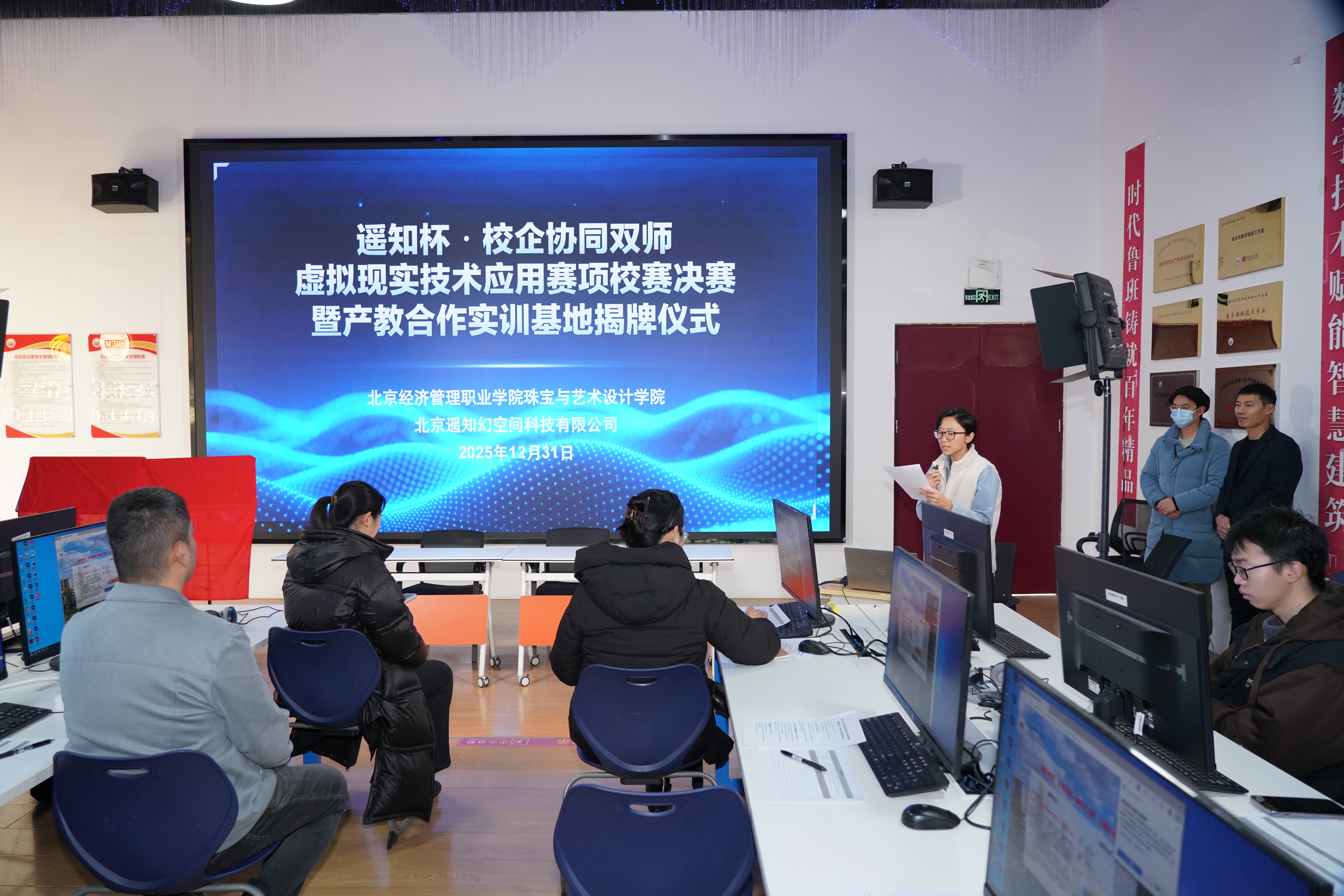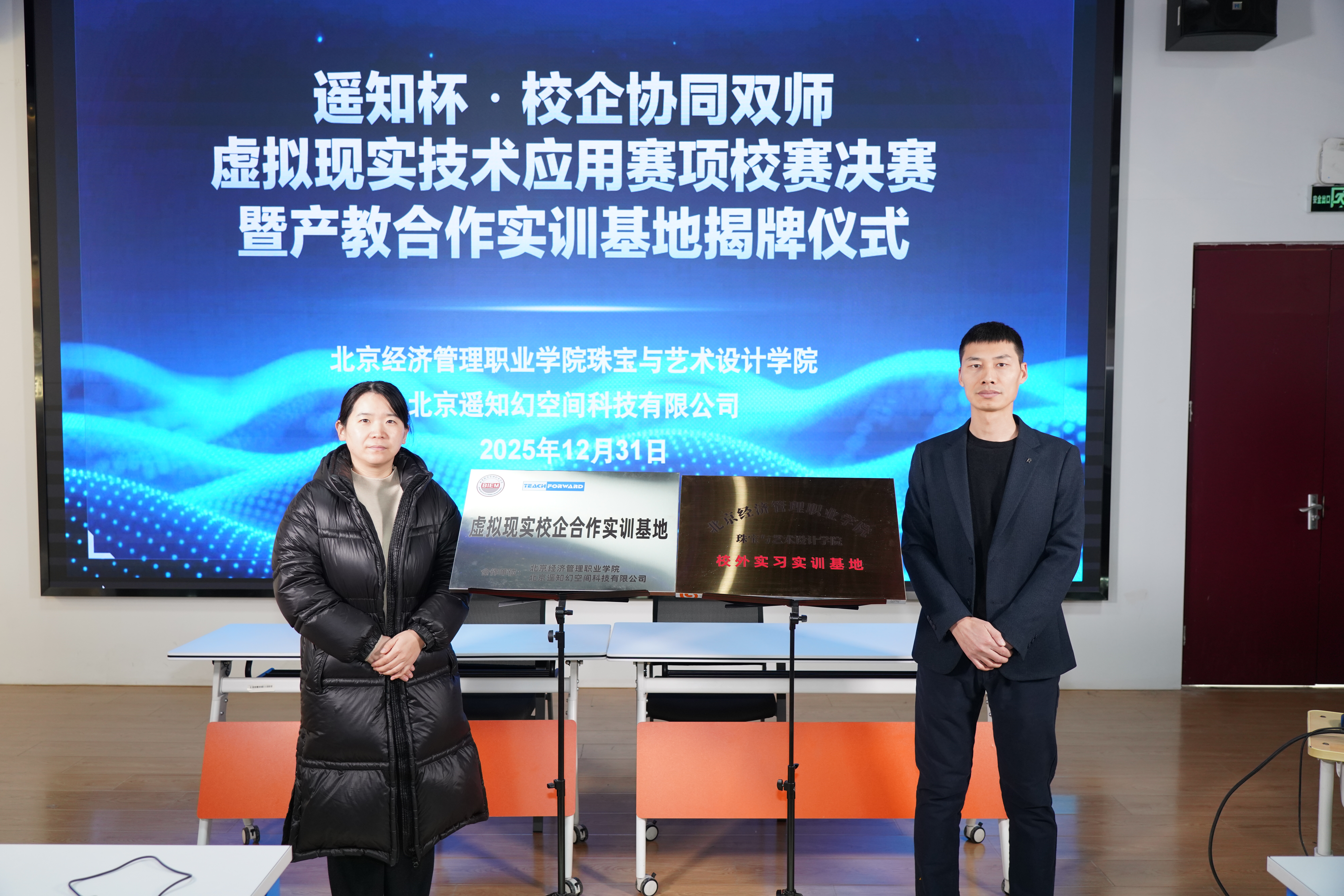 近日,北京经济管理职业学院珠宝与艺术设计学院成功举办“遥知杯·校企协同双师虚拟现实技术应用赛项”校赛决赛,并同期举行了产教合作实训基地揭牌仪式。学院教务处、招生就业处相关领导,以及珠宝与艺术设计学院领导班子成员共同出席了本次活动。