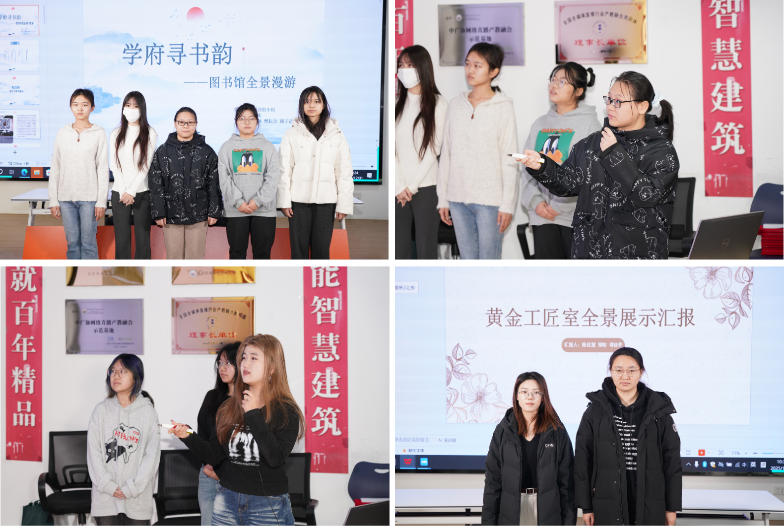 接下来是本次校赛决赛,现场气氛热烈。参赛学生以小组形式,依次展示了他们精心创作的虚拟现实技术应用作品。这些作品构思新颖,技术应用娴熟,充分展现了学生们将前沿VR全景数字技术与艺术设计相融合的创新能力和实践水平。比赛基于“遥知双导师项目实践服务”平台开展,得到了遥知在技术层面的全程支持,是校企协同育人模式的一次生动实践。