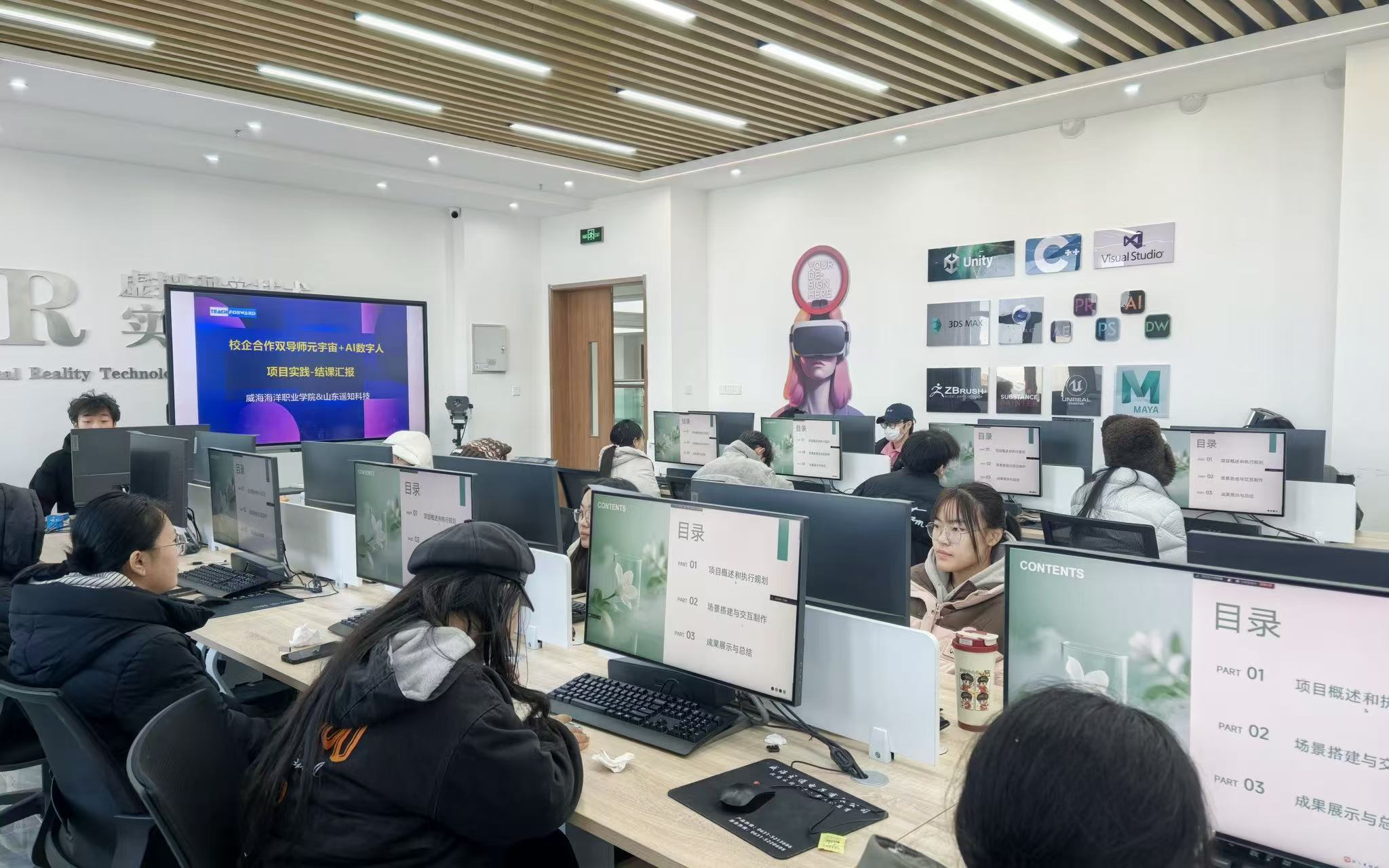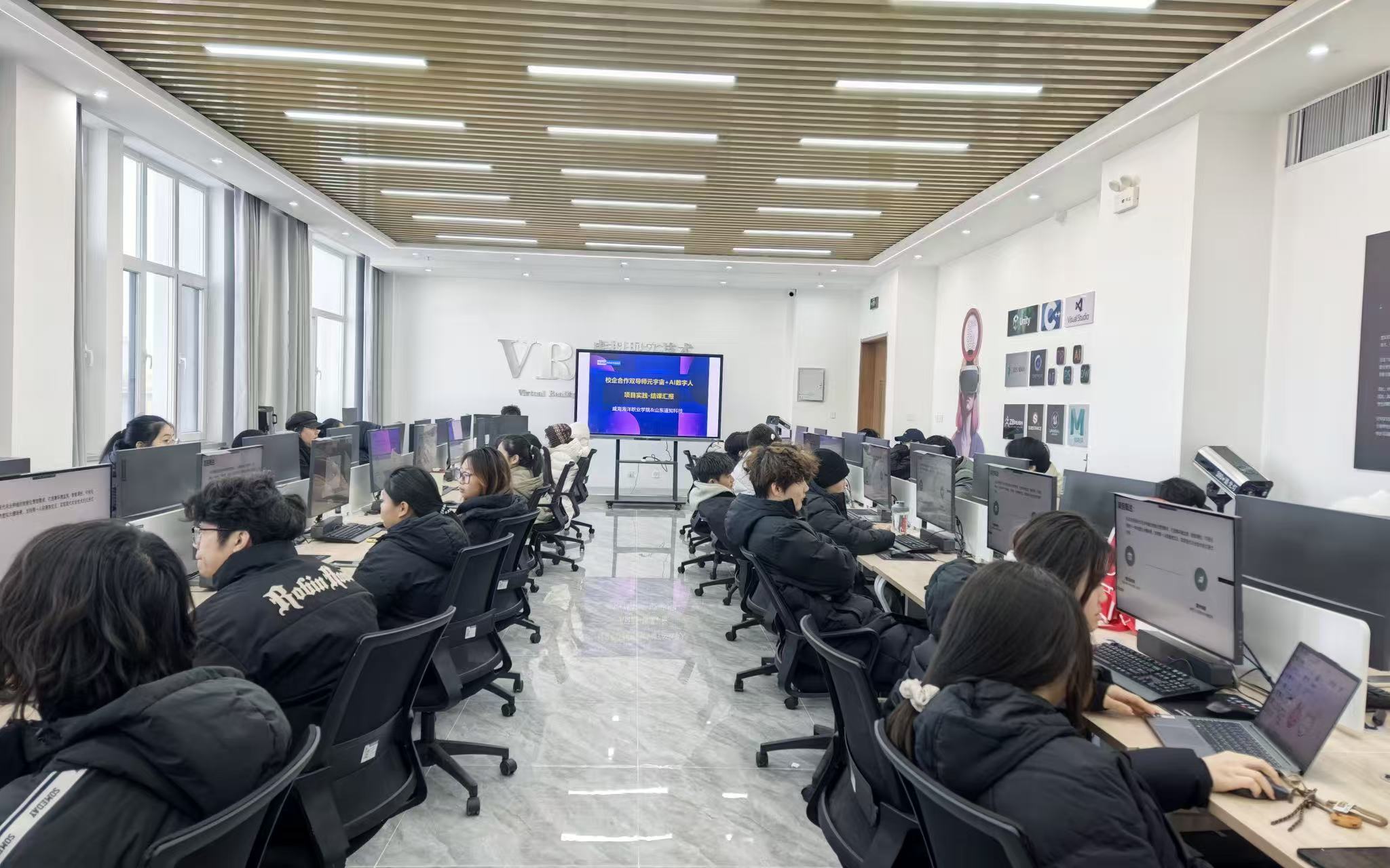 近日,山东遥知与威海海洋职业技术学院联合开展的“双导师项目实践”课程圆满结束。本次实践聚焦元宇宙与人工智能前沿领域,通过“企业工程师+校内专业教师”的双导师授课模式,成功指导9组学生产出作品。