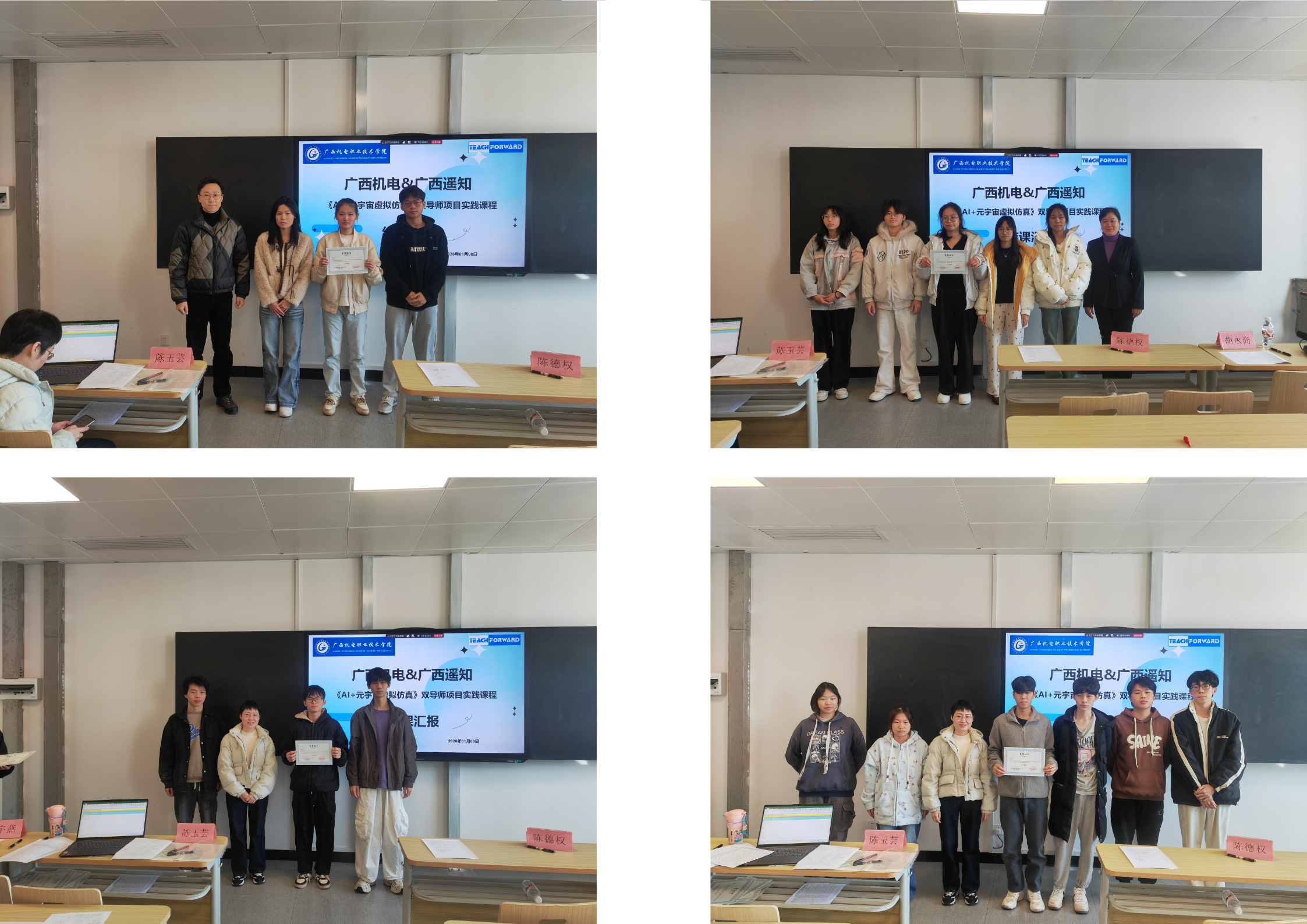 近日,广西遥知与广西机电职业技术学院联合开展的《AI+元宇宙虚拟仿真双导师项目实践》课程结课汇报顺利举行。此次合作是双方深化产教融合、践行“双元育人”模式的又一重要成果,标志着校企在共育数字技术人才方面迈出了坚实步伐。
