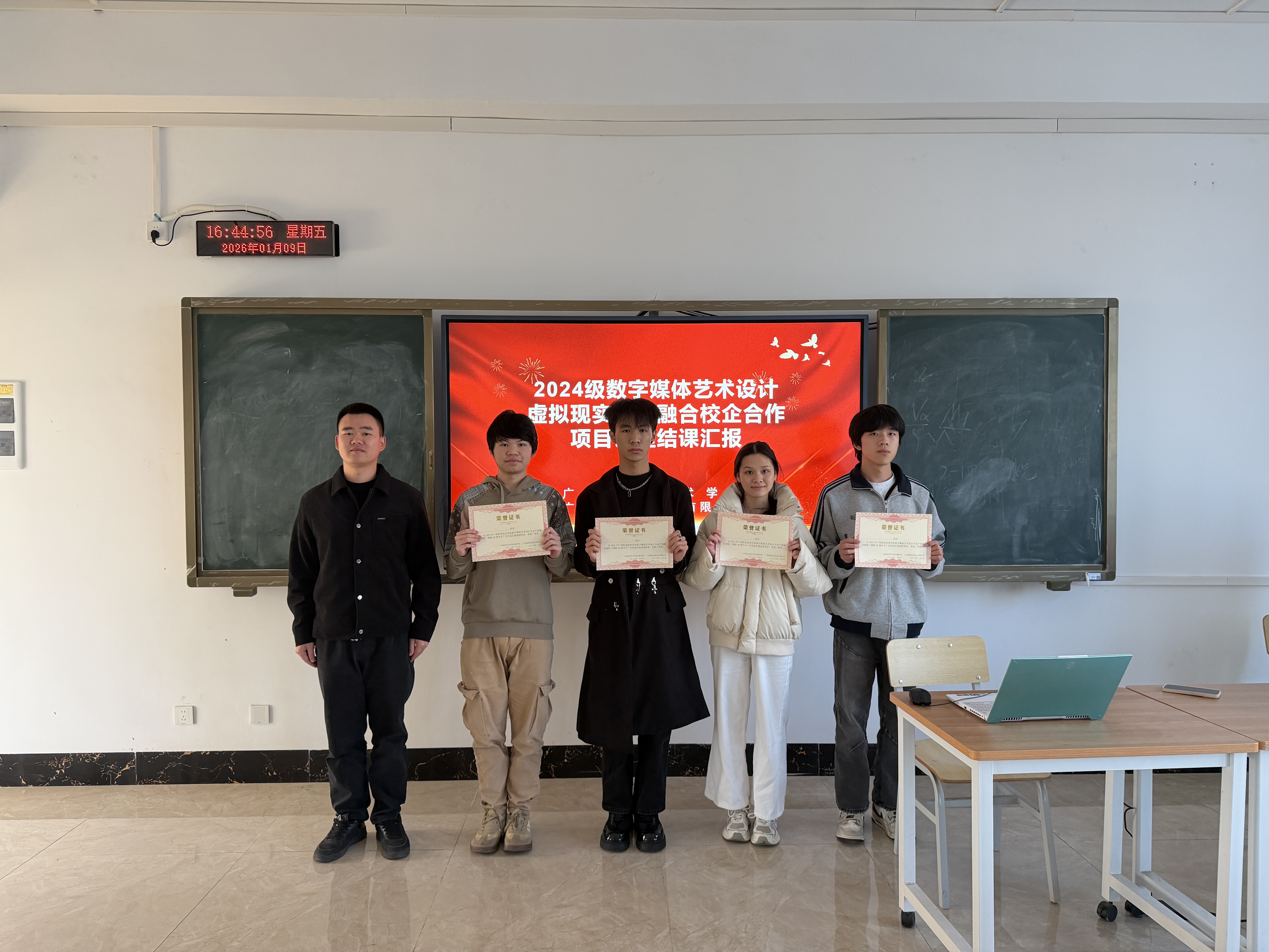 2026年1月9日,广西职业技术学院2024级数字媒体艺术设计专业《裸眼3D、AI数字人》双导师项目实践课结课汇报圆满举行。本次汇报由遥知全程提供技术支持,12组学生团队通过创新作品展示了裸眼3D技术与AI数字人的深度融合,呈现了一场科技与艺术碰撞的视觉盛宴。