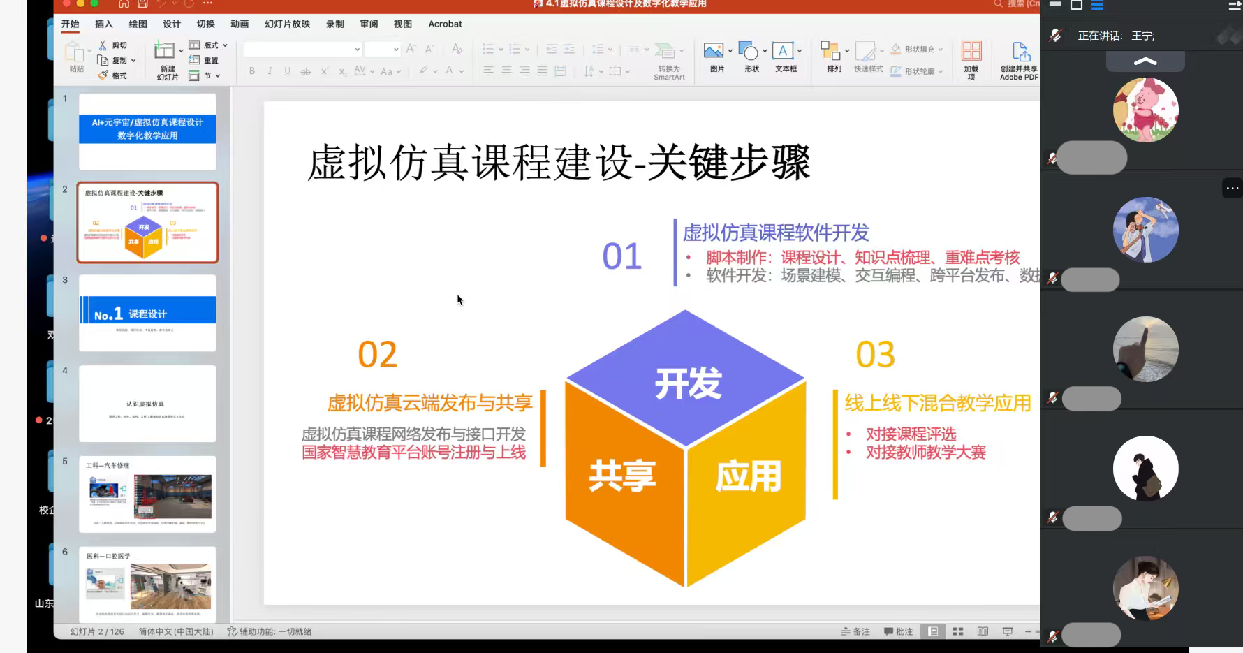 虚拟仿真课程的选题应紧密结合专业特色与实际需求,注重实践性和创新性;在课程设计环节,需充分利用虚拟仿真技术的交互性和沉浸感,提升学生的学习体验。此外,会议还重点介绍了如何将虚拟仿真课程上线至国家智慧教育公共服务平台,以便更广泛地服务于全国师生。