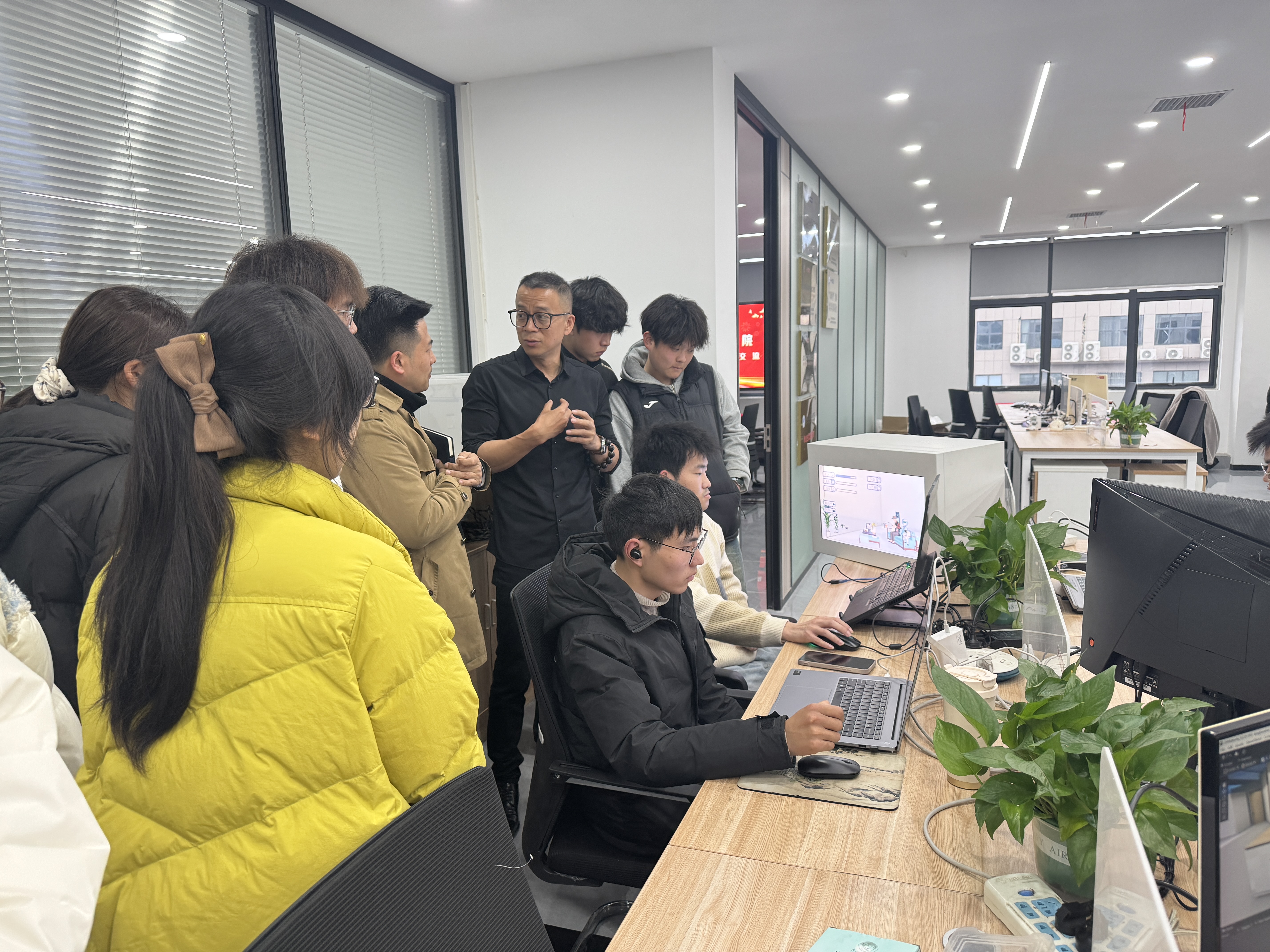 2026年3月16日,合肥师范学院师生代表团10人一行来到遥知华东区产教融合中心,围绕企业技术应用与学科竞赛展开深度交流。
