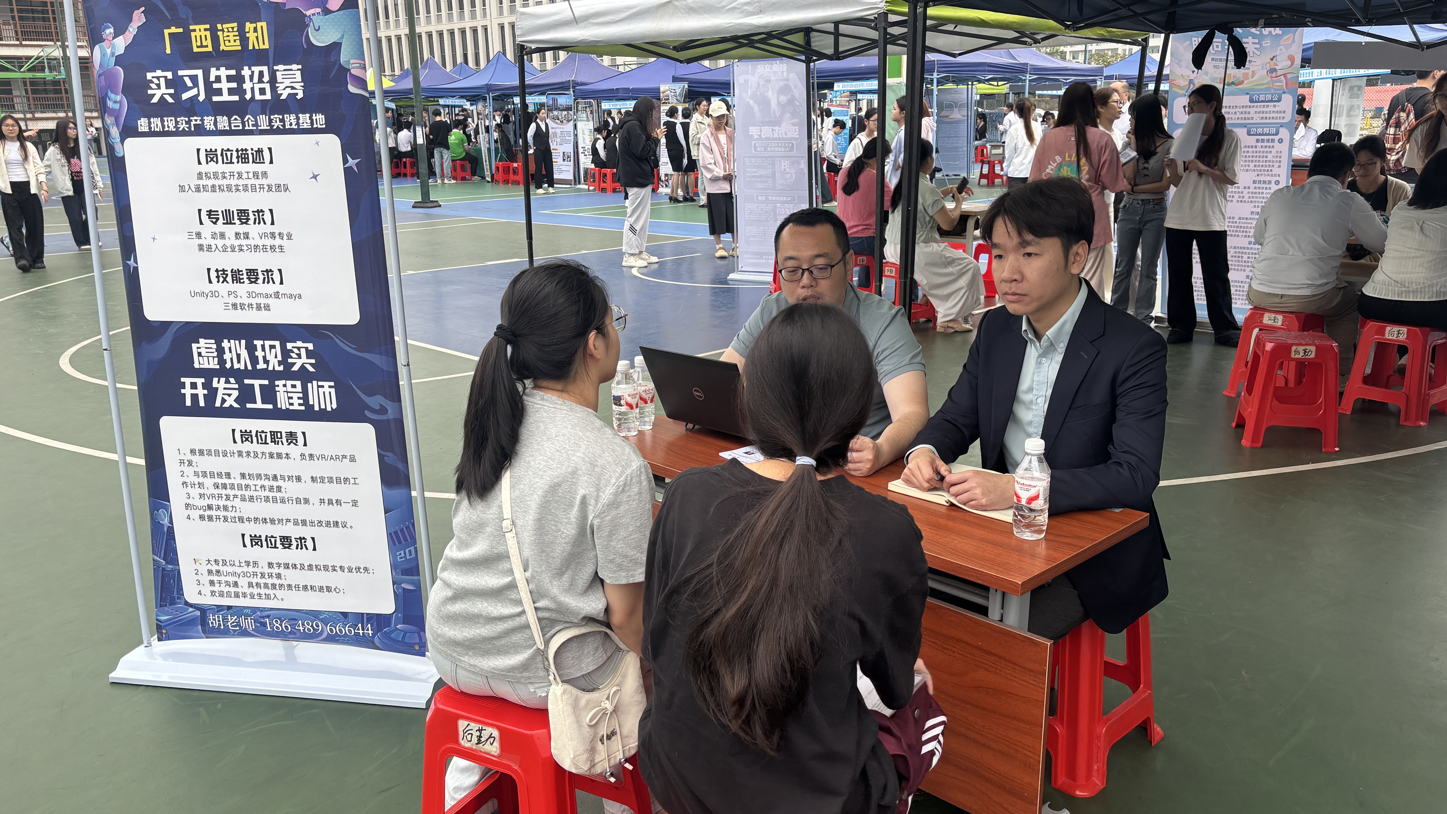 近日,广西遥知科技受邀参加南宁职业技术大学文化与旅游学院学生实习暨就业双选会,招募文旅方向数字媒体技术人才。
