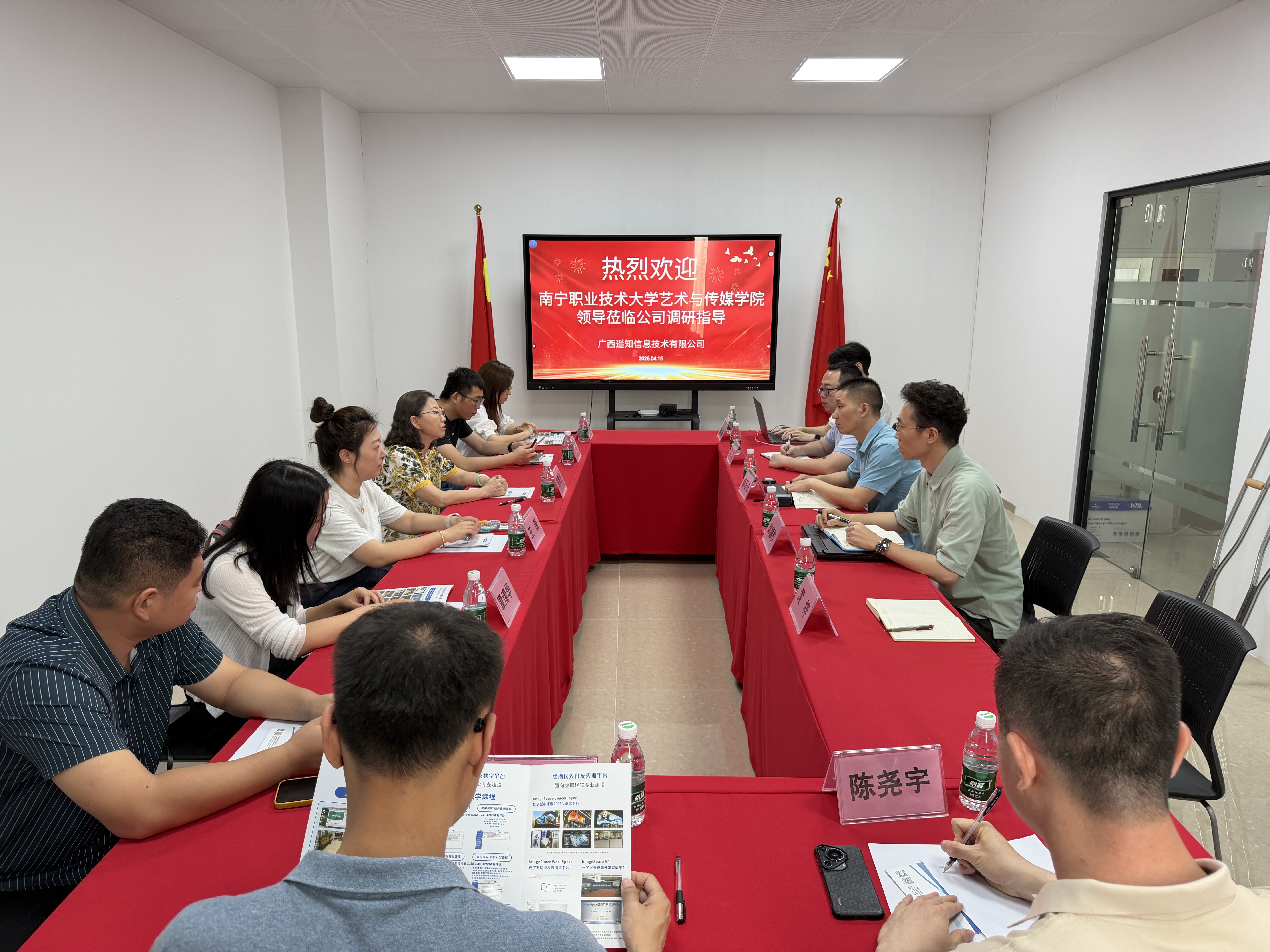 2026年4月15日,南宁职业技术大学艺术与传媒学院教学团队一行赴广西遥知围绕“产教融合与数字课程建设”主题开展校企合作研讨。此次活动旨在深化校企协同育人机制,共同探索数字化时代下课程建设与人才培养的新路径。