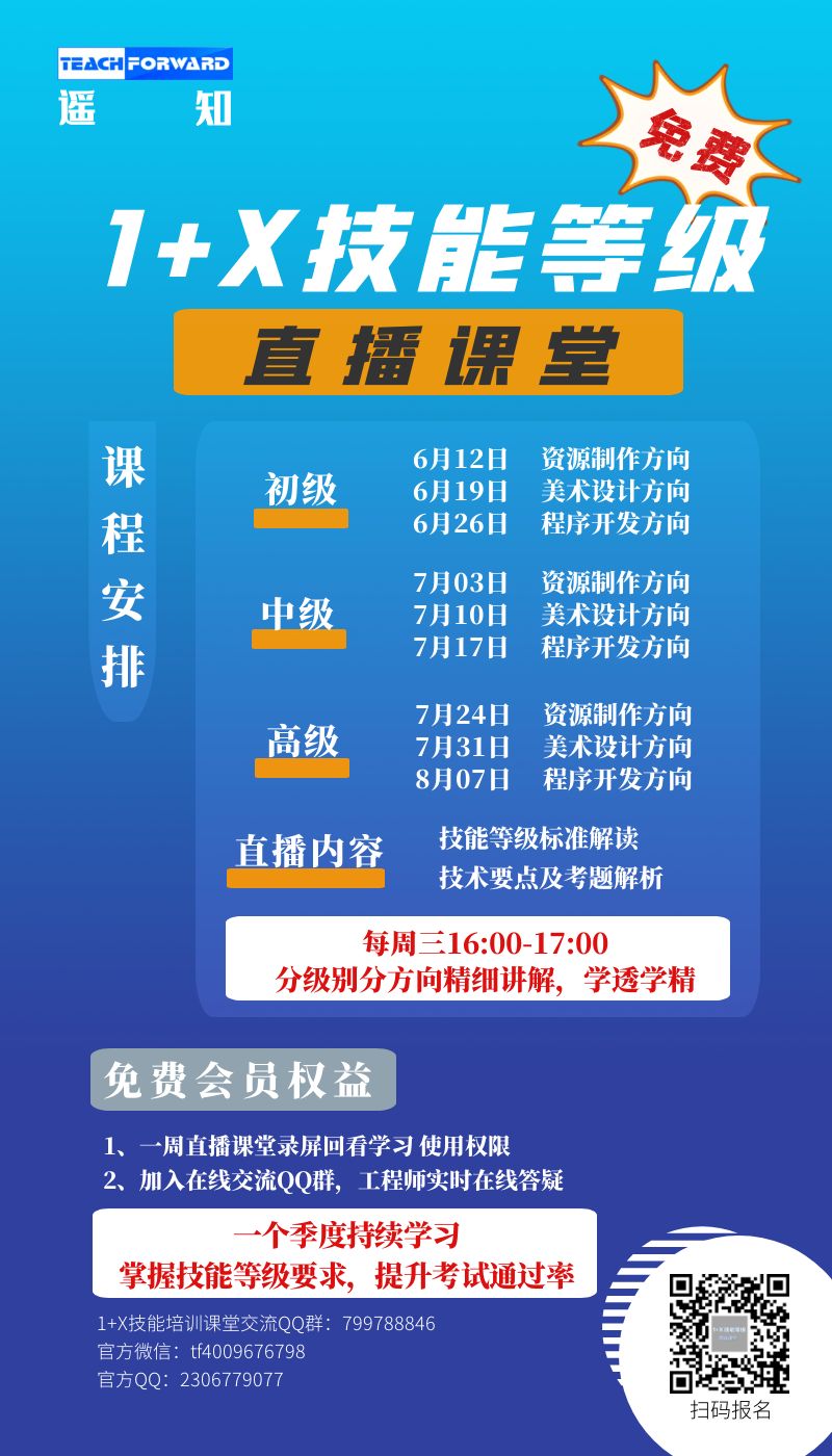 【直播课堂】24年第二季度1+X技能等级 线上直播课堂免费开展