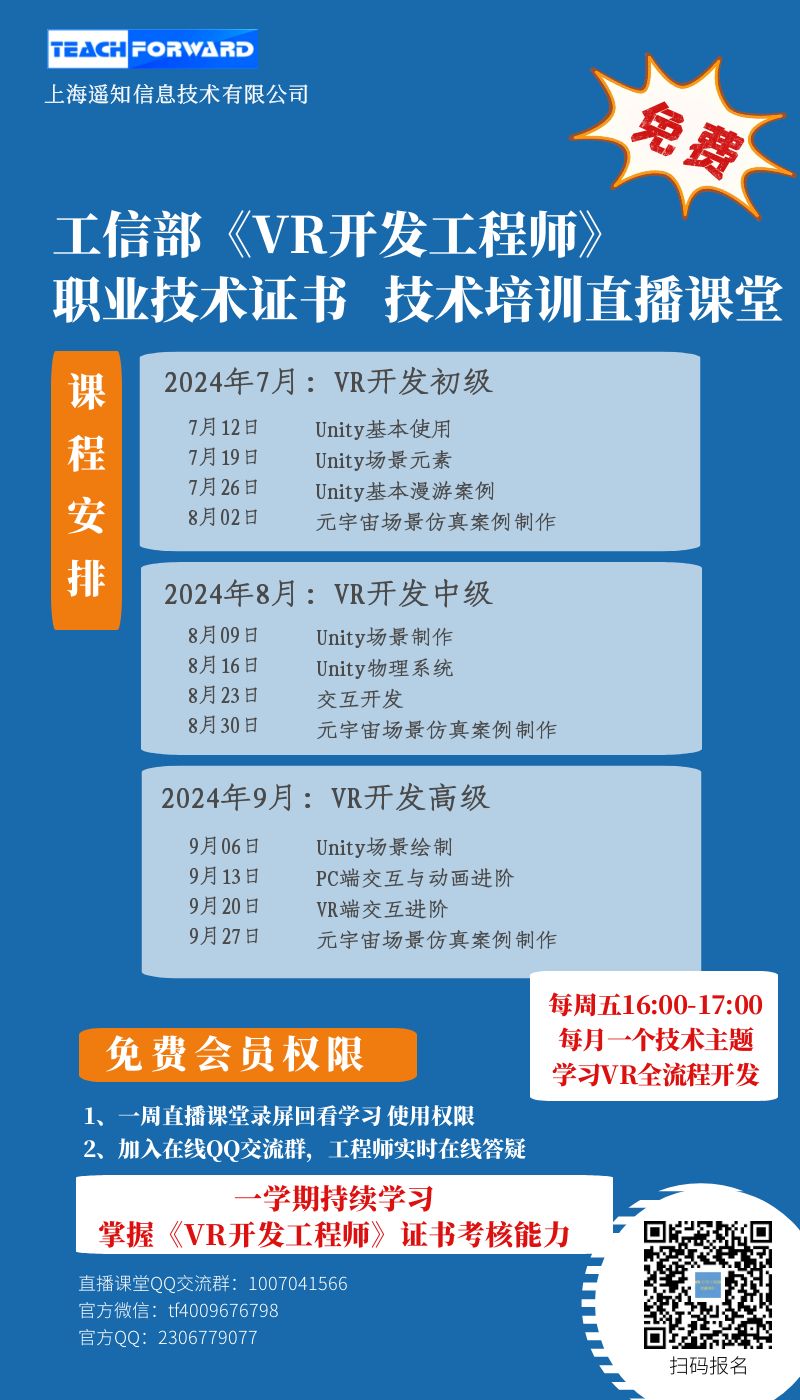 【直播课堂】24年第三季度《VR开发工程师》线上免费培训