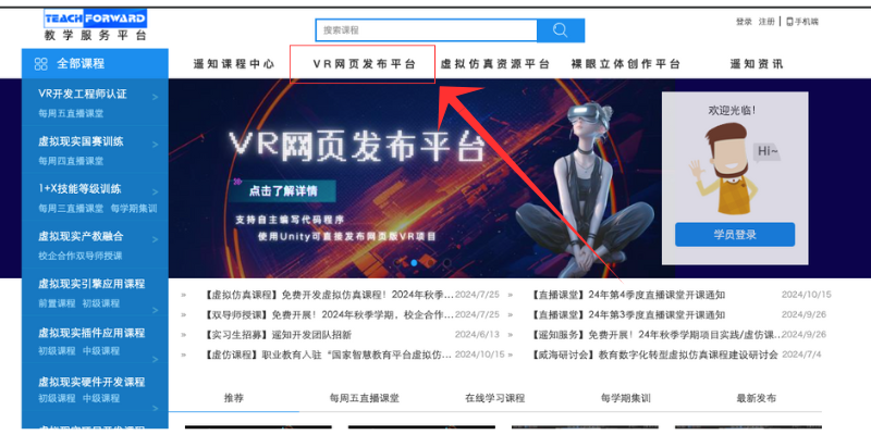 为支持更多VR作品实现网络浏览和操作,特别是同学们自主编程开发的VR作品由于上架、Web GL部署等问题,无法实现多平台对外联网展示,遥知推出“VR网页发布平台”。