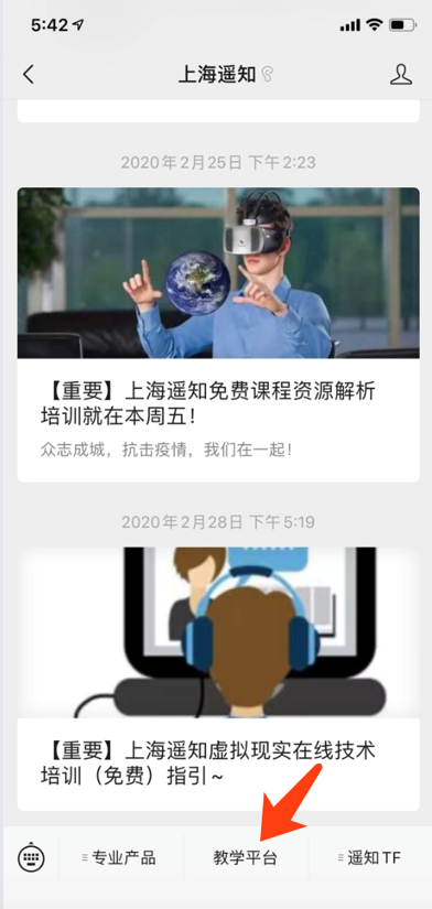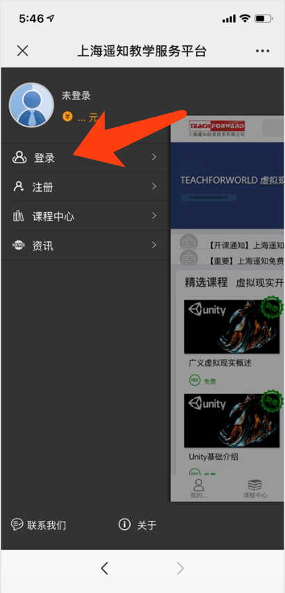 通过关注遥知微信公众号(TeachForward),从下方的菜单栏中,进入“教学平台”手机端。