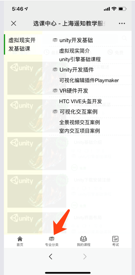 选择“课程中心”,然后在“专业分类”中选择需要学习的课程。