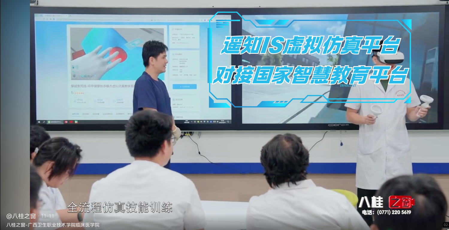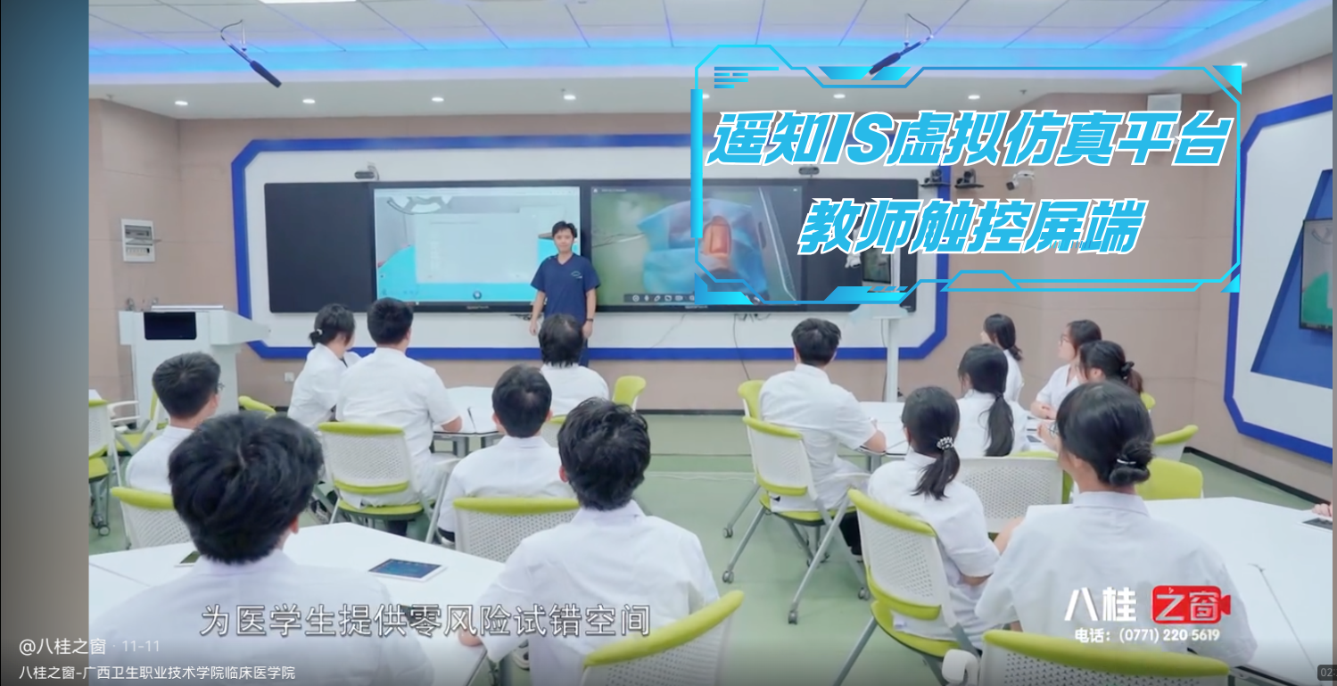 近日,广西都市频道知名栏目《八桂之窗》对广西卫生职业技术学院临床医学院进行了专题报道,聚焦其“深化教学改革 培育技能精英”的实践成果,重点展示了学院在虚拟仿真实训基地建设方面取得的显著进展。报道视频中,展示了由遥知提供并建设的虚拟仿真课程资源平台(ImageSpace元宇宙虚拟仿真资源平台)在该基地教学改革中发挥的核心作用。