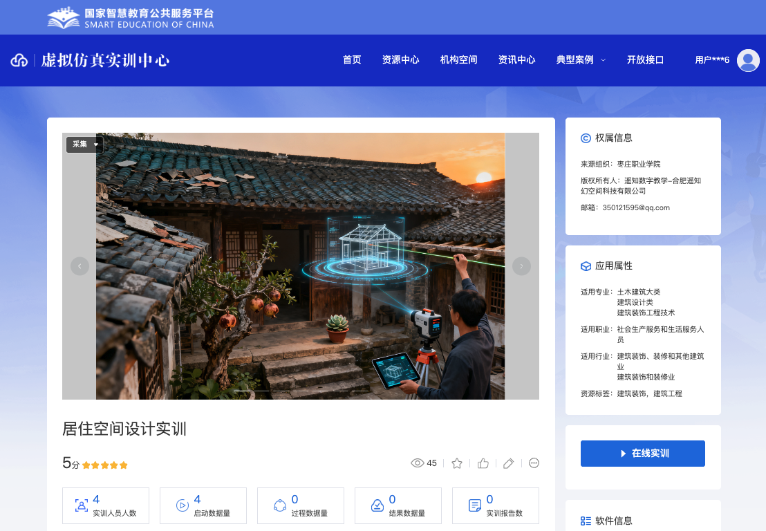 枣庄职业学院&山东遥知联合开发的《居住空间设计实训》虚拟仿真课程,近期正式上线国家智慧教育公共服务平台。