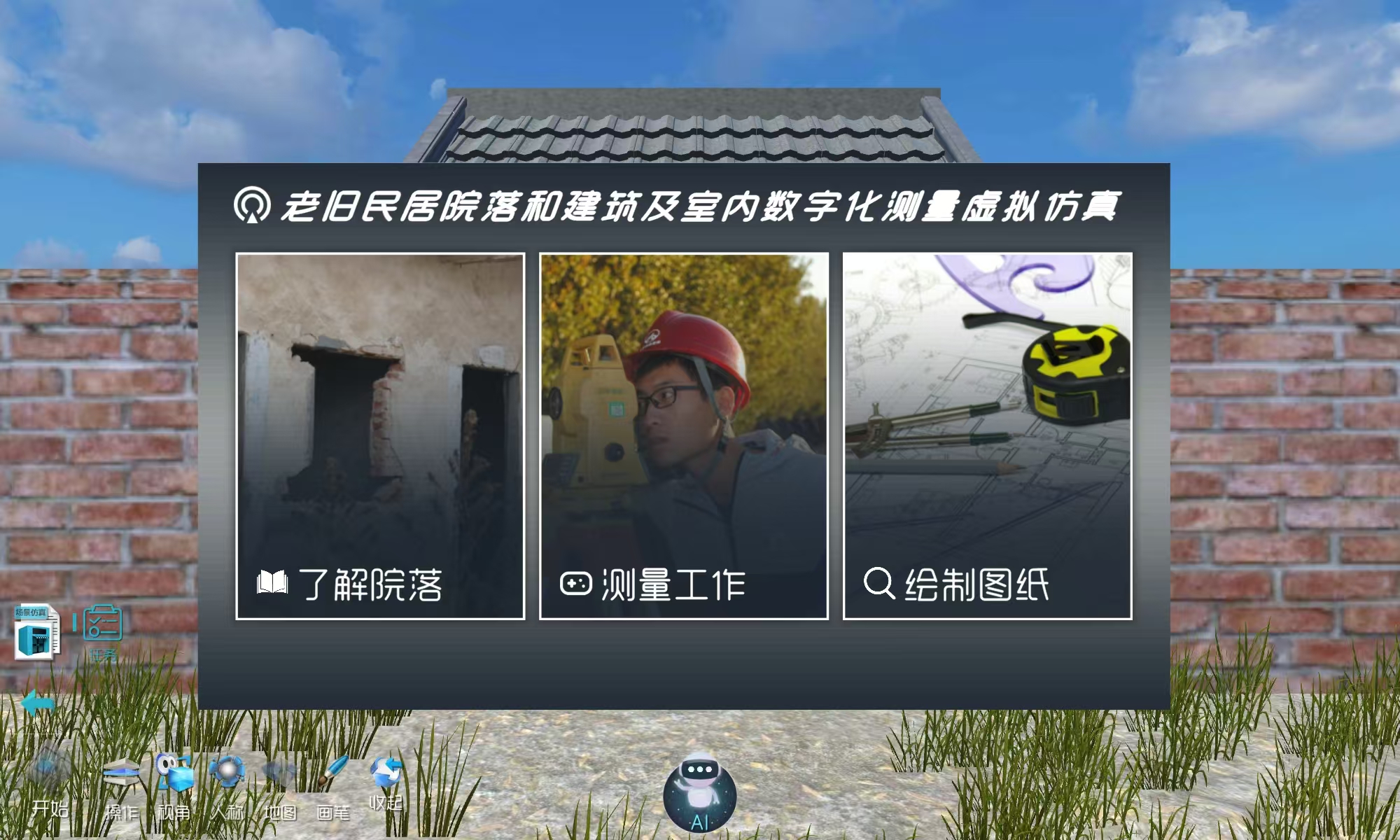 该课程面向《居住空间设计实训》课程模块四“有机更新乡居改造综合设计”,通过数字化技术还原传统民居的建筑结构、材料与空间形态,学生可沉浸式体验无人机航拍、全站仪测绘及测量仪操作等环节,模拟真实场景下的数据采集与图纸绘制过程。