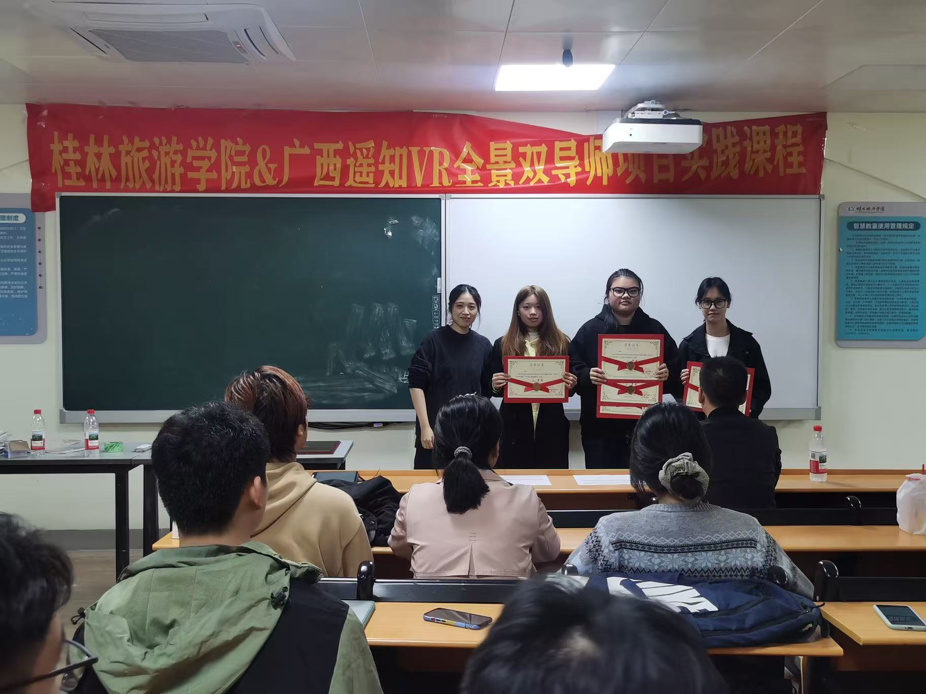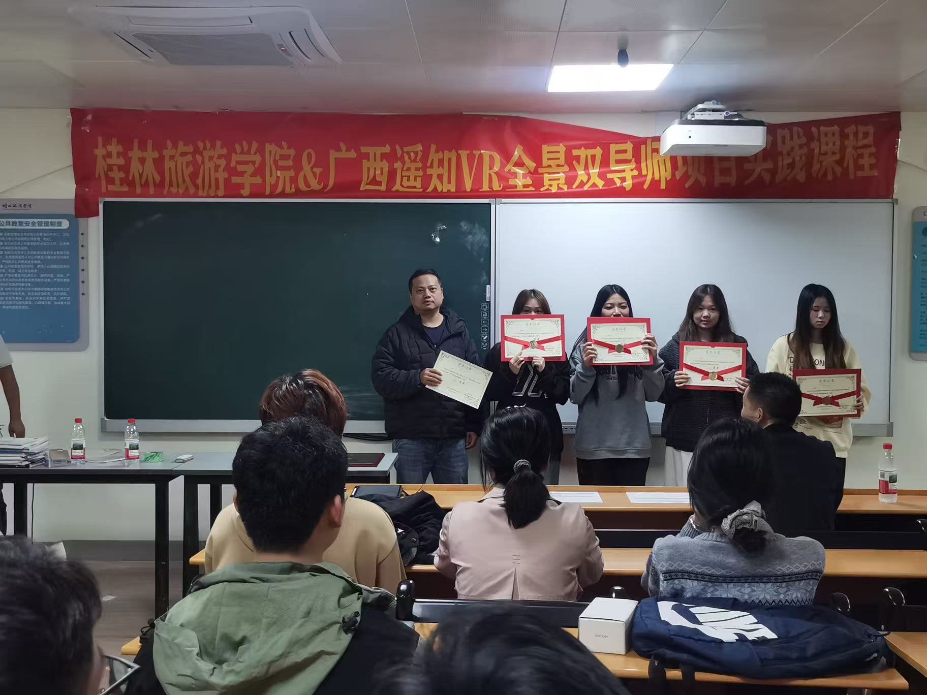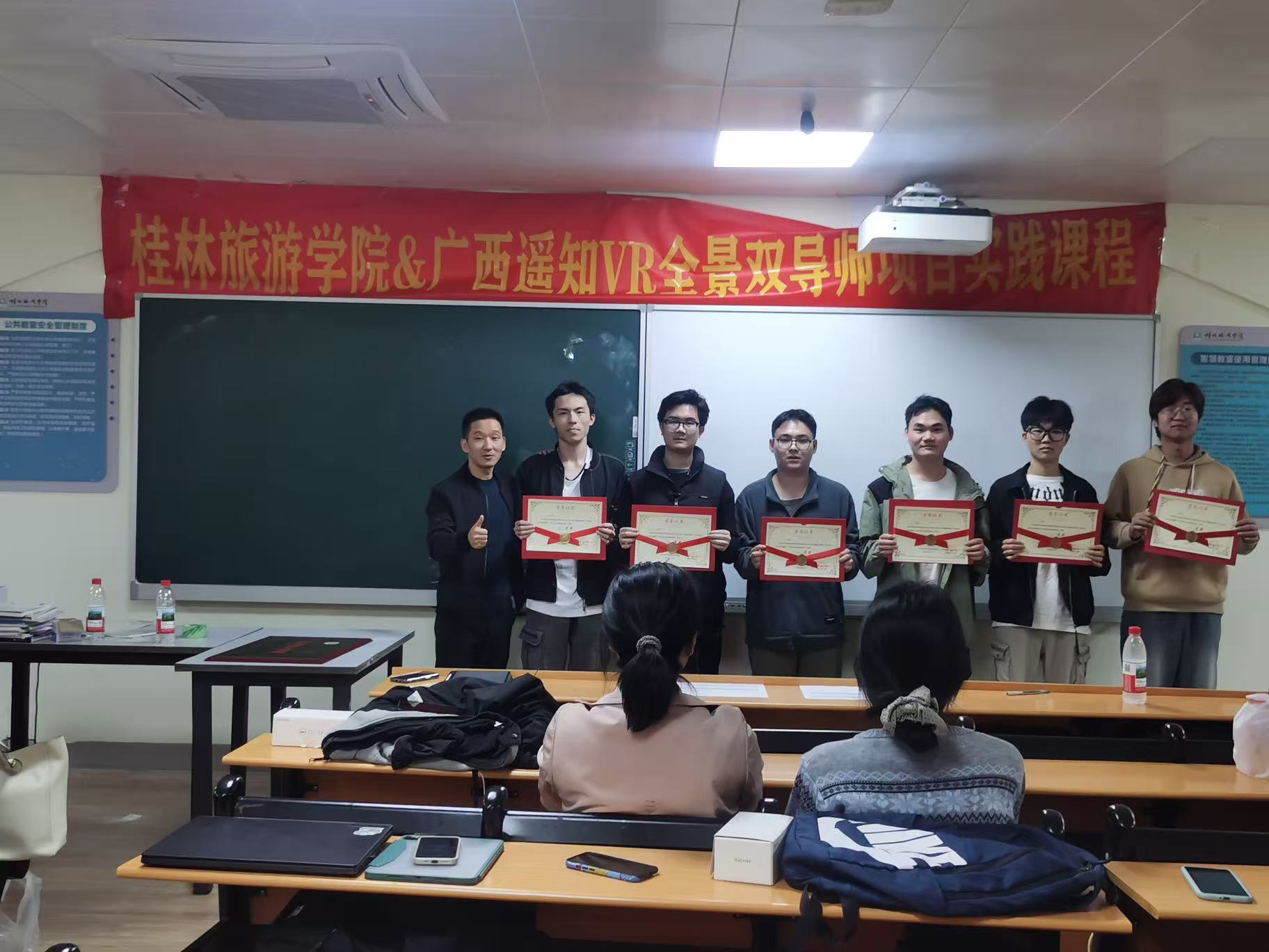 本次“VR全景双导师项目实践课程”是桂林旅游学院艺术设计学院与广西遥知校企合作的重点项目之一。课程采用创新的“双导师”教学模式,由学校专业教师与企业资深技术专家共同指导。课程聚焦VR全景漫游技术的开发与应用,旨在帮助学生掌握虚拟现实领域的核心技能,并通过真实项目实践提升综合能力。