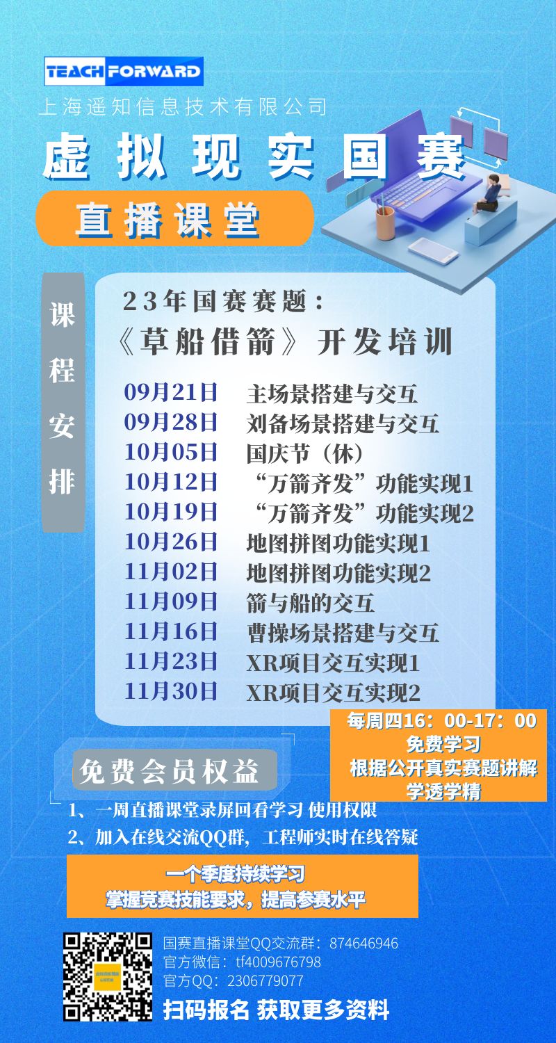【直播课堂】23年虚拟现实国赛赛题开发培训——《草船借箭》