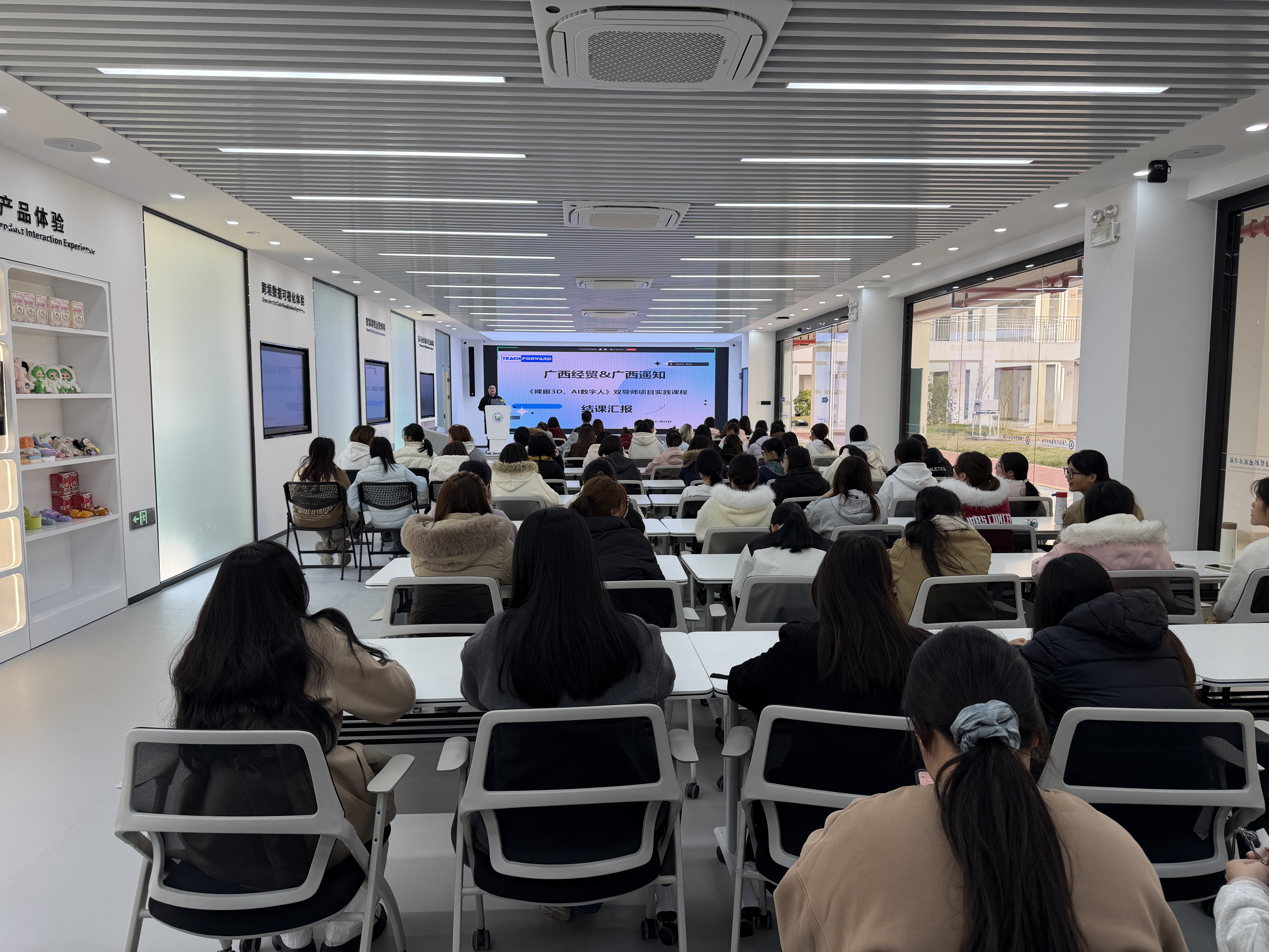2026年1月8日下午,广西经贸职业技术学院2024级数字媒体技术专业“裸眼3D、AI数字人”双导师项目实践课结课汇报会成功举行。本次活动是学校深化产教融合、探索校企协同育人模式的又一重要成果,标志着数字媒体技术专业在实践教学改革上迈出了坚实步伐。