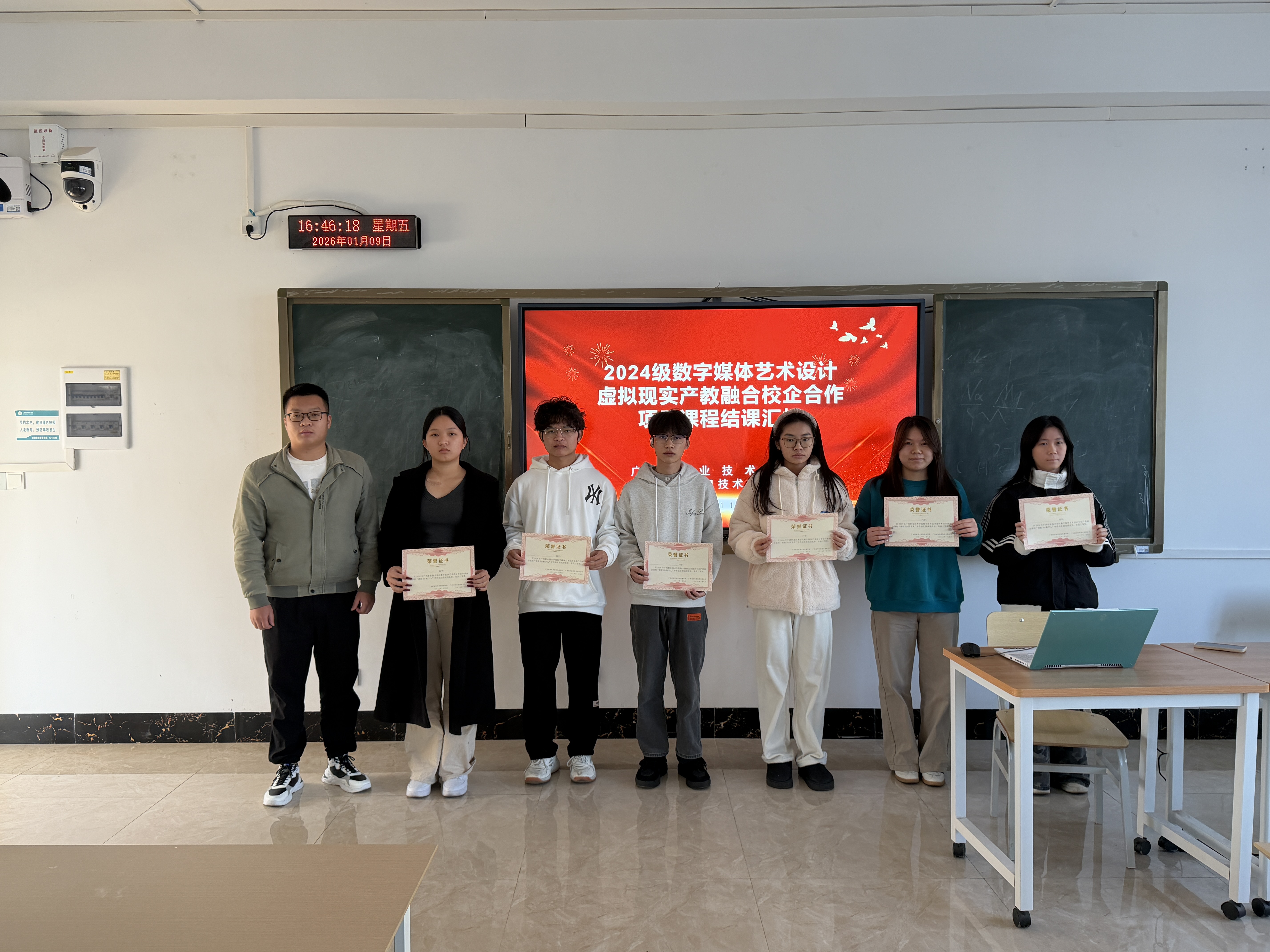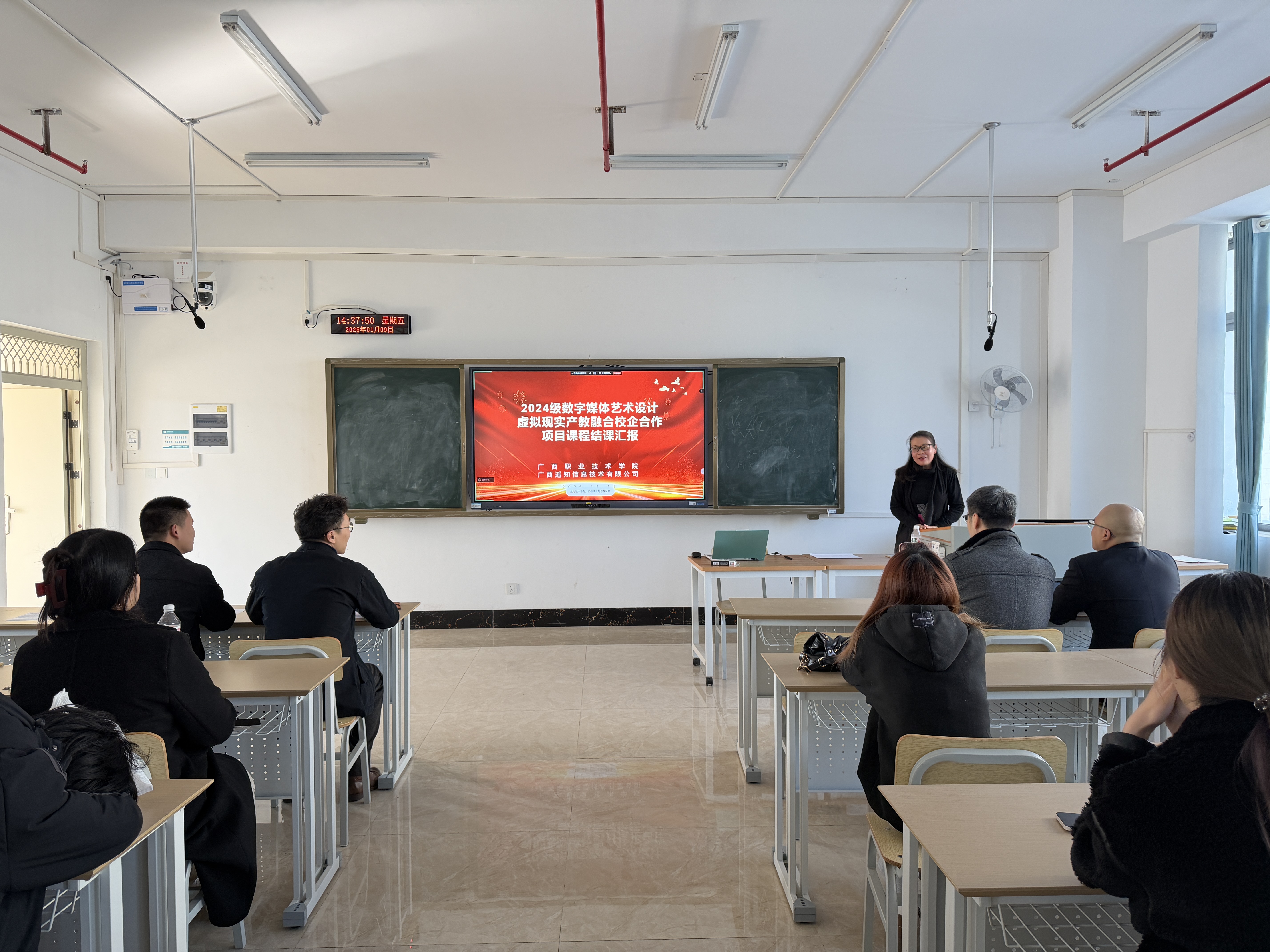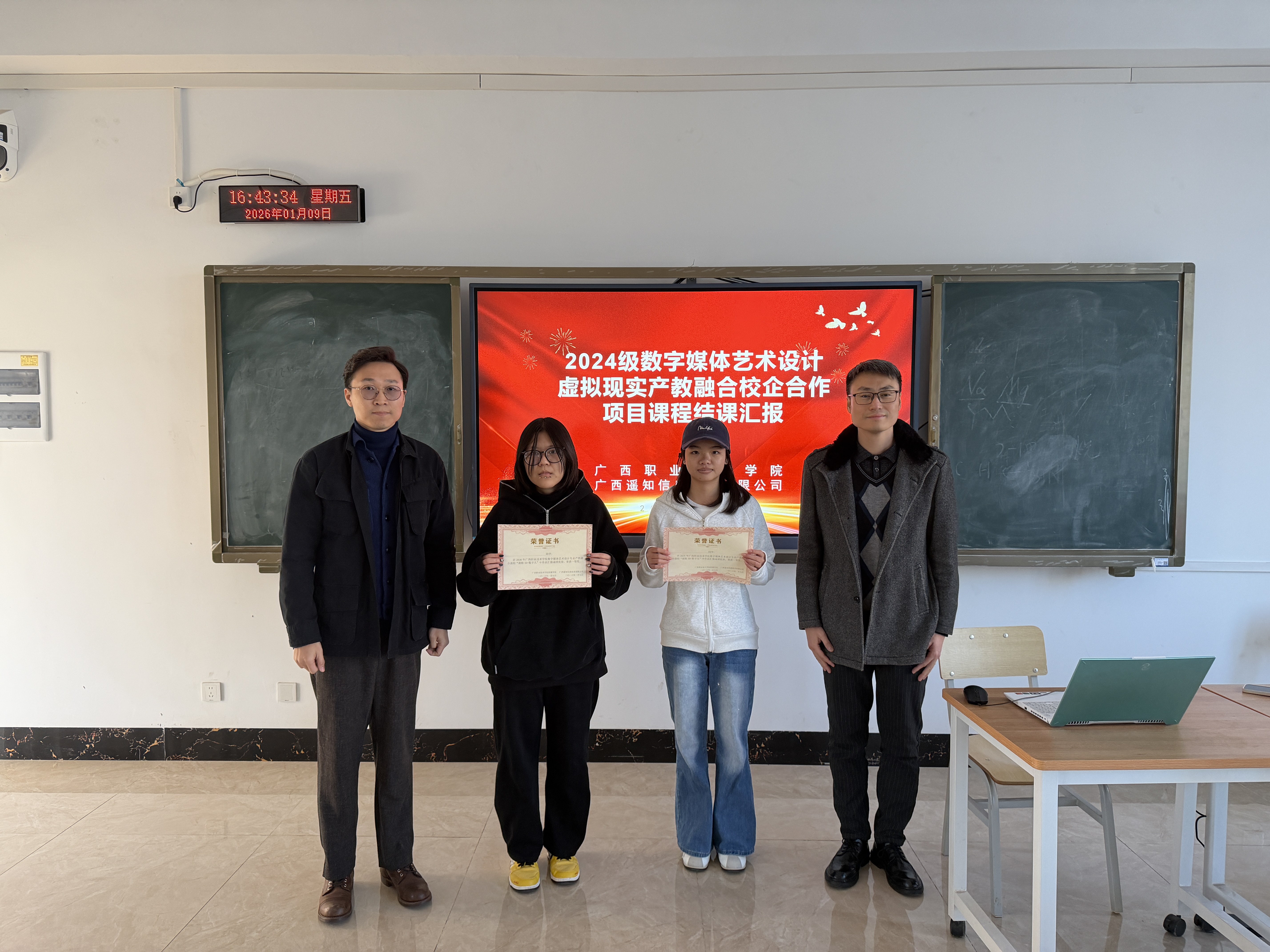 2026年1月9日,广西职业技术学院2024级数字媒体艺术设计专业《裸眼3D、AI数字人》双导师项目实践课结课汇报圆满举行。本次汇报由遥知全程提供技术支持,12组学生团队通过创新作品展示了裸眼3D技术与AI数字人的深度融合,呈现了一场科技与艺术碰撞的视觉盛宴。