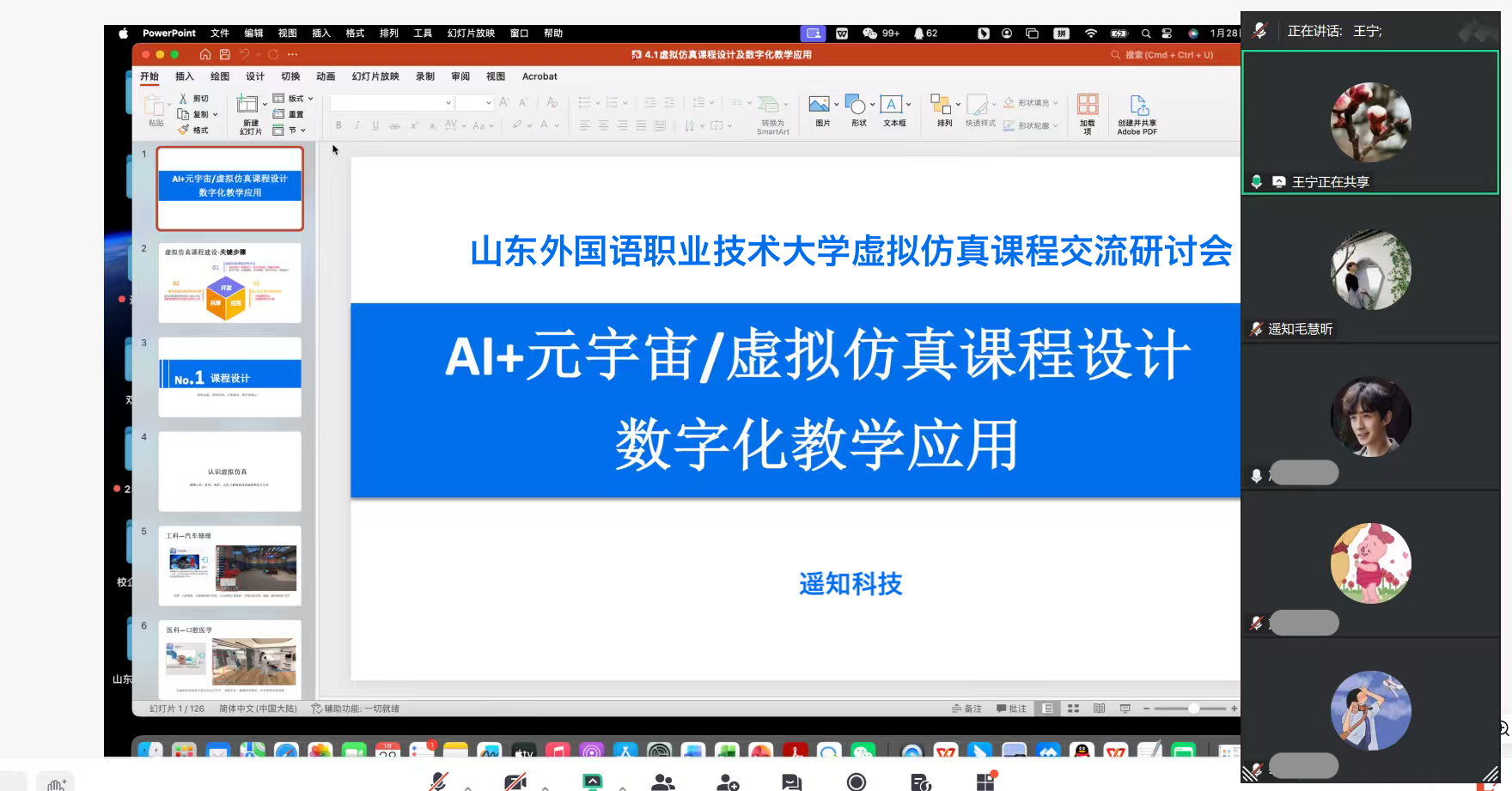 近日,山东遥知与山东外国语职业技术大学联合举办了“虚拟仿真课程设计线上培训会”,吸引了该校各专业负责人及骨干教师的积极参与。本次培训会旨在推动虚拟仿真技术在教育教学中的深度应用,助力学校“双高”专业建设,提升教学质量和信息化水平。