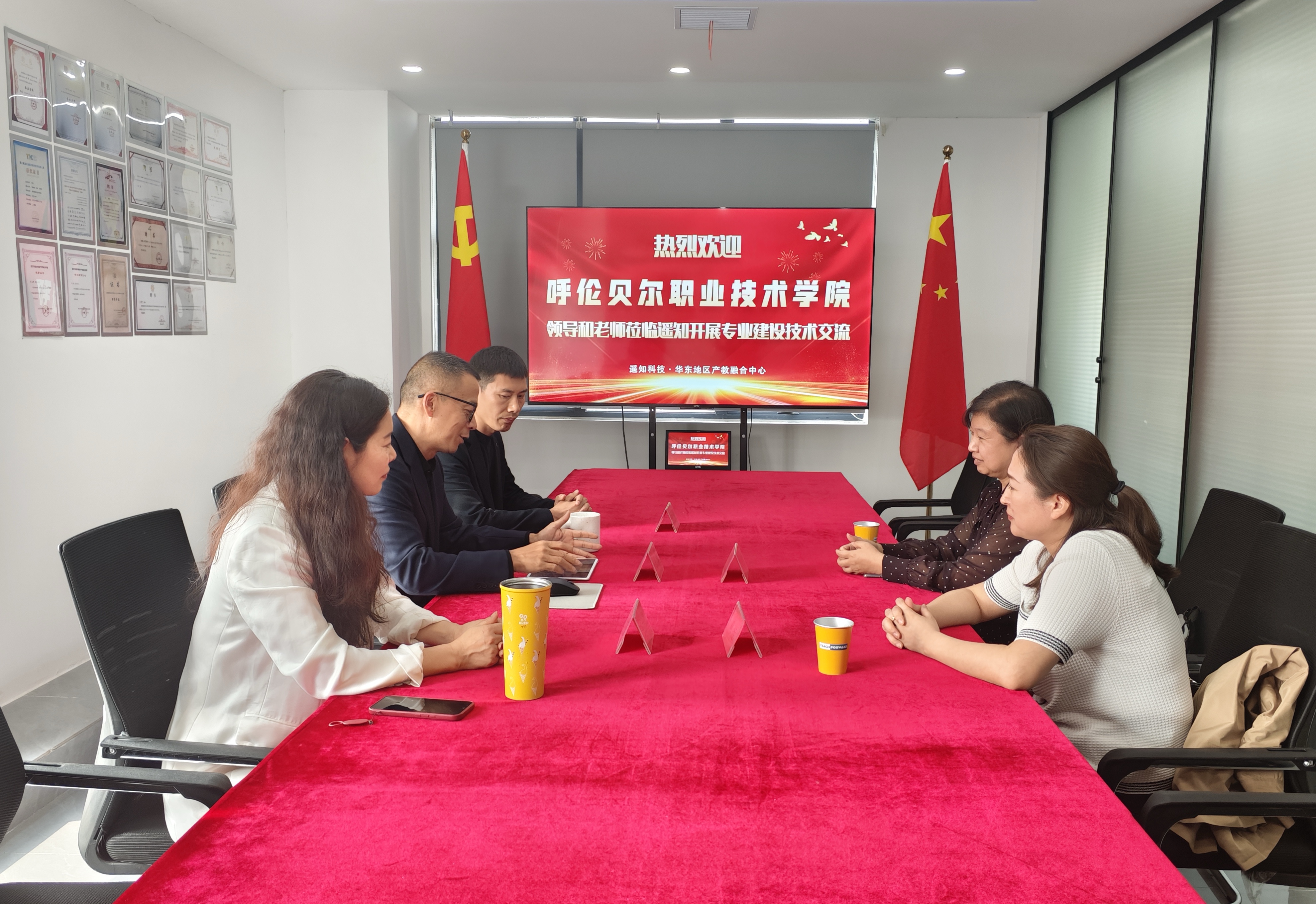 此次合作中,遥知科技充分发挥区域资源优势,安排呼伦贝尔职院代表团赴安徽职业技术大学艺术与创意学院开展交流访问,促进跨区域院校间的经验共享与资源互通。三方就数字媒体专业建设、实践教学改革等议题进行了深入探讨。